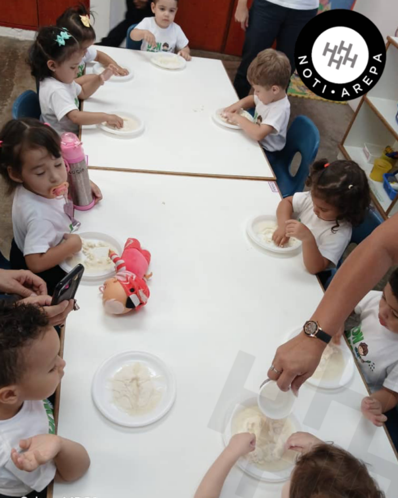 > «Los niños disfrutaron las actividades y las arepas realizadas con material reciclado después se las llevaron para su casa… Algunos llevaron queso, jamón y hasta plátanos fritos para rellenar las que ellos mismos amasaron.»