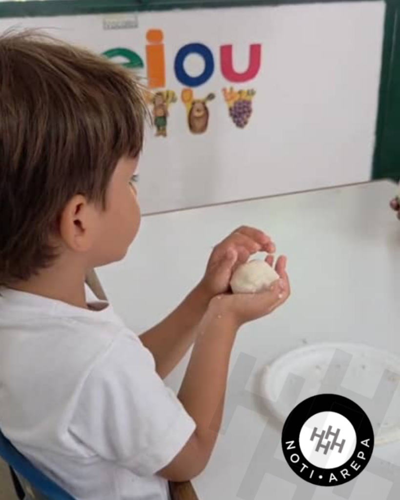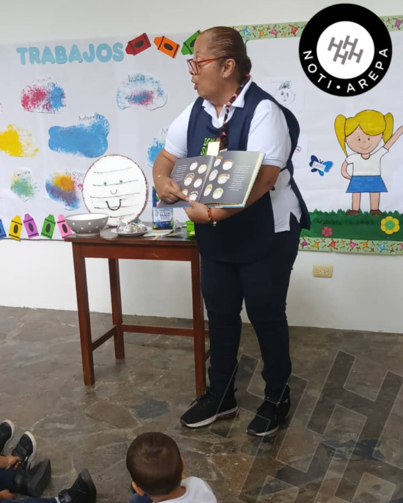 La actividad, organizada por la directora del Jardín Don Simón Lexa Morales y llevada a cabo por la maestra Elizabeth López, comenzó con la magia de la palabra. Los niños escucharon atentos la historia de nuestra embajadora de la Arepa.